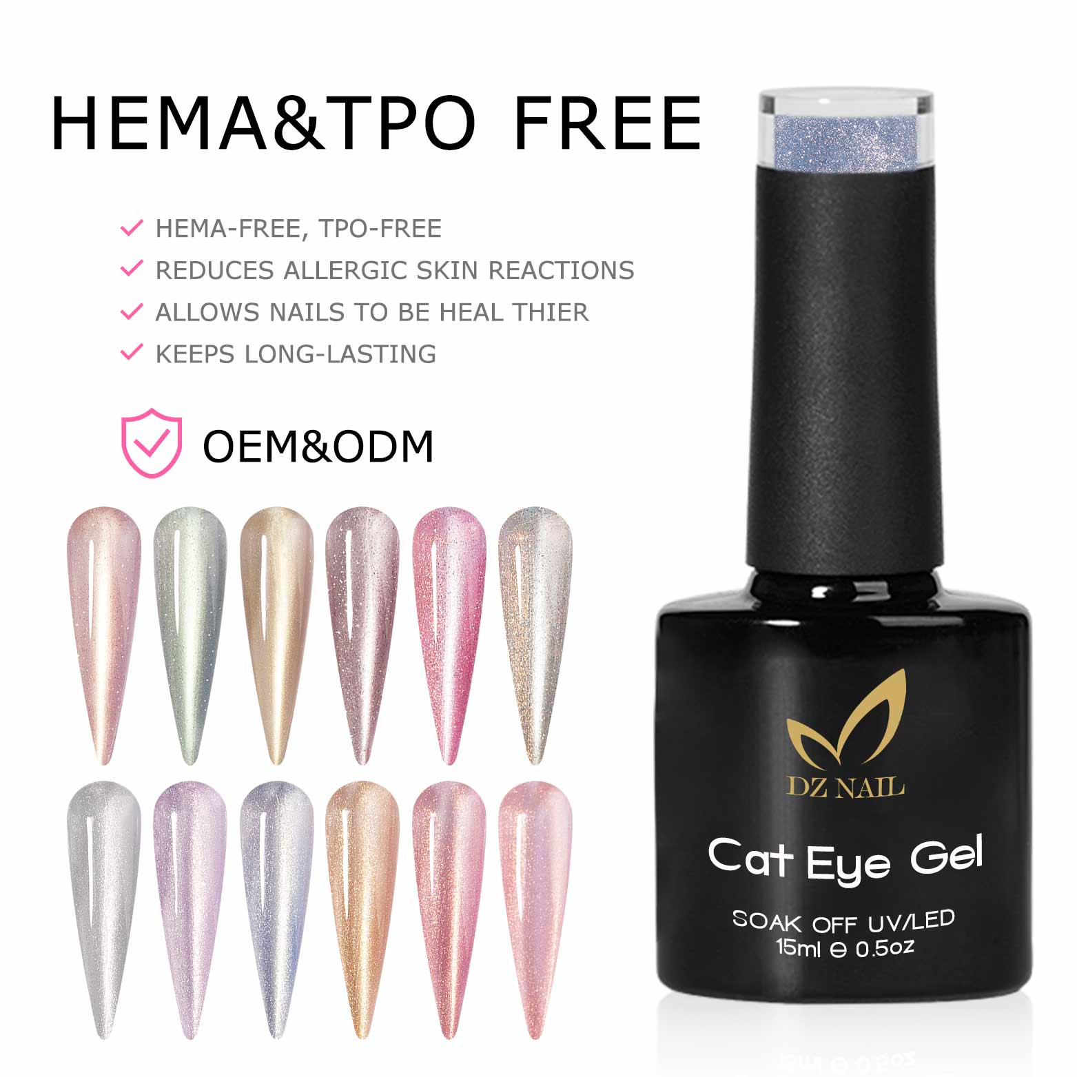 If you’re chasing the most sought-after nail trend, look no further than DZ NAILS cat eye gel polish — the magnetic manicure essential that blends innovation and glamour. Let’s dive into its origins, science, stunning effects, and how to master it at home.What Is Cat Eye Gel Polish & Where Does It Come From? Cat eye gel polish emerged as an innovative evolution of traditional gel manicures, redefining nail art with its unique optical magic. Its name draws inspiration from cat’s eye stone (known as "东方猫眼" in Eastern gemology), a rare jewel that exhibits a sharp, movable light band resembling the slit pupil of a feline’s eye — a phenomenon called "chatoyancy" or "cat eye effect". This nail trend revolutionized the beauty industry by replicating that gemstone’s allure on nails. Unlike basic polish, it uses magnetic technology to create dynamic patterns, making it a staple for both professionals and at-home manicure lovers alike. What’s Inside DZ NAILS Cat Eye Gel Polish?Crafted with DZ NAILS’ commitment to quality (using materials from top 5 global suppliers), our cat eye gel polish features a safe, high-performance formula with four key components:- Natural Resin Base: Derived from eco-friendly sources, this forms a durable, flexible foundation that adheres seamlessly to nails and resists chipping for up to 3 weeks.- Finely Milled Magnetic Particles: Metallic or mineral microbeads that respond to magnets, shifting into precise patterns when activated.- Vibrant Pigments: Concentration-rich colorants (e.g., CI 77499, CI 77019) that deliver opaque coverage in 1-2 coats, available in shades from subtle nudes to bold neons.- Soak-Off Polymer: Ensures easy, damage-free removal without harsh scraping. Our formula is non-toxic, gentle on natural nails, and optimized for both UV and LED lamps — a testament to DZ NAILS’ "affordable luxury" philosophy.Stunning Effects of DZ NAILS Cat Eye Gel PolishThe star of the show is its 3D dynamic light effect: When activated by a magnet, the magnetic particles align to form a bright, narrow light band that shifts with your movement and light angle. But that’s not all:- Versatile Patterns: Create classic straight lines, diagonal slants, or abstract designs by adjusting the magnet’s position.- Color-Shifting Magic: Many DZ NAILS shades (e.g., our "Moonlight Glow" series) transform under different lights — warm nude in sunlight, cool gray indoors, and subtle iridescence at night.- High-Shine Finish: Dries to a glossy, mirror-like surface that stays vibrant even with daily wear.- Flattering for All: The light-reflecting band visually lengthens fingers and brightens all skin tones, especially complementing warm or yellowish complexions.Step-by-Step Tutorial: Apply DZ NAILS Cat Eye Gel Polish Achieving salon-worthy results is easy with our user-friendly formula. Here’s how to do it: Prep ToolsDZ NAILS cat eye gel polish, magnetic wand, base coat, top coat, UV/LED lamp, nail file, lint-free wipe, alcohol, cuticle oil.Application Steps1. Nail Prep: Sanitize hands, push back cuticles, and shape nails. Buff the surface lightly to remove shine, then wipe with alcohol to eliminate oil and dust .2. Base Coat: Apply a thin layer of DZ NAILS base coat, sealing the nail tips. Cure under LED lamp for 30-60 seconds or UV lamp for 2 minutes.3. Base Color (Optional): For deeper contrast, apply 1 coat of dark gel (e.g., DZ NAILS Black Onyx) and cure. This makes the cat eye effect pop louder.4. Magnetic Layer: Apply a thick, even coat of DZ NAILS cat eye gel polish. Do not cure yet .5. Create the Cat Eye: Hold the magnetic wand 0.5-1mm above the wet polish. For a classic look, hover it centered over the nail for 5-6 seconds. For diagonal patterns, angle the wand from cuticle to tip. Move quickly when removing the magnet to lock the design.6. Cure: Place nails under the lamp (LED: 60s; UV: 2min) to set the pattern permanently .7. Top Coat: Apply a thin layer of DZ NAILS no-wipe top coat, sealing the tips again. Cure for 60 seconds, then wipe any tacky residue with alcohol.8. Finish: Massage cuticle oil into the nail beds to nourish and complete the manicure . Pro Tips- For a "9D galaxy effect," add a second layer of magnetic polish and repeat steps 4-6.- Experiment with magnet distance: Closer = sharper line; farther = softer, diffused effect. Why Choose DZ NAILS Cat Eye Gel Polish? More than just a trend, our cat eye gel polish embodies DZ NAILS’ promise of quality and accessibility. With salon-grade durability, easy application, and head-turning effects, it’s perfect for busy professionals, nail art enthusiasts, and anyone wanting to elevate their look. Ready to embrace the magnetic magic? Explore our full range of DZ NAILS cat eye gel polish shades and start creating your signature manicure today!